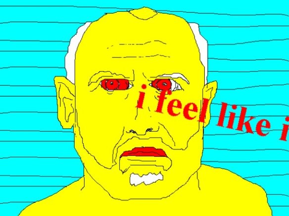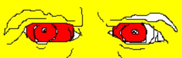 The opening cutscene pictures a disgruntled man with yellow skin, red lips, and burning eyes locked in an empty stare. The words “i feel like i been awake before but i can’t be sure and i’m drugged up on drugs and i think they are affecting me” scroll across the screen in red letters. A pulsing gray circle opens up between the man’s eyes, expanding to fill the entire screen. The enveloping grayness transitions to the first playable section.