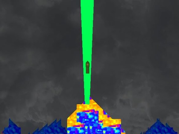 Destroying all the satellites requires careful turning and a clear understanding of the gravity present. Without any more targets, the clock tower is free to soar up to the highest point in the level. Flying off-screen proceeds to the third stage.